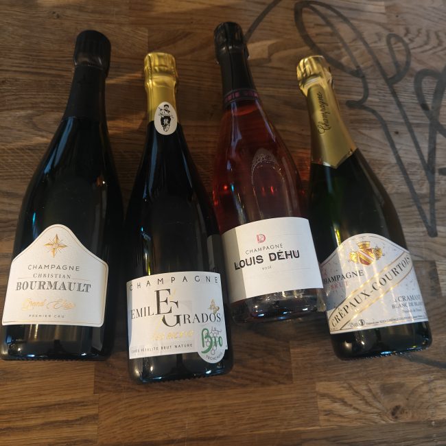 Vi starter med publikumsfavoritten fra Crépaux-Courtois. Ren Chardonnay, ren lækkerhed. Perfekt til velkomst og Kongens nytårstale!